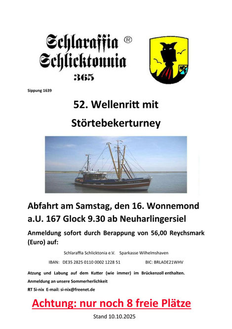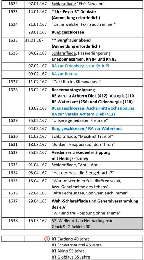 Sippungsbeginn an allen Sippungen, außer den besonders gekennzeichneten, ist Glock 7 d. A., Atzung Glock 6 d.A.